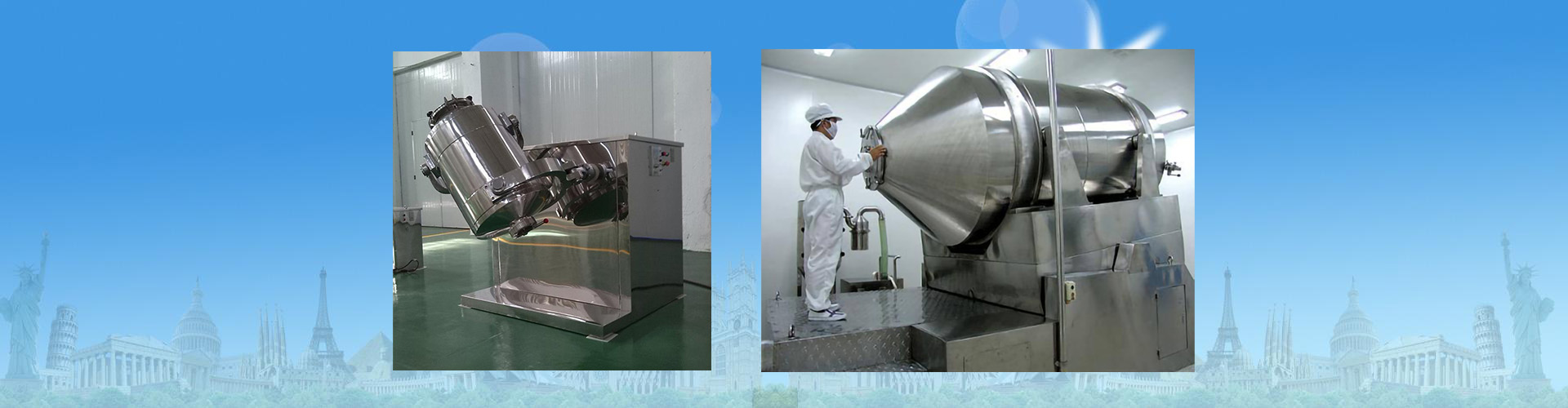 在主軸的驅動下,三維混合機的筒體反復移動,如平移、旋轉、滾動等,使物料沿簡化體向三個方向移動,從...More>>